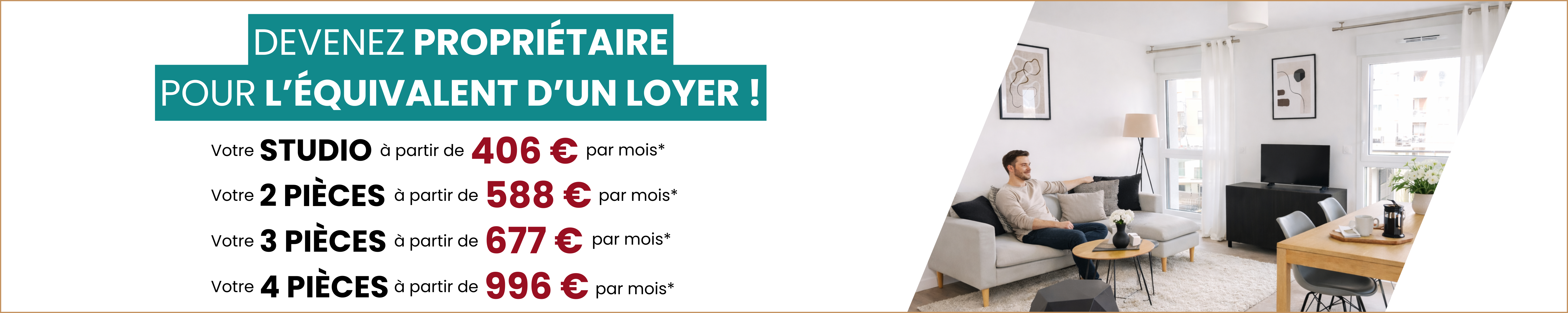 Devenez propriétaire pour le prix d'un loyer, avec le Prêt à taux Zéro. Pour le même budget, devenez propriétaire pour créer votre patrimoine.